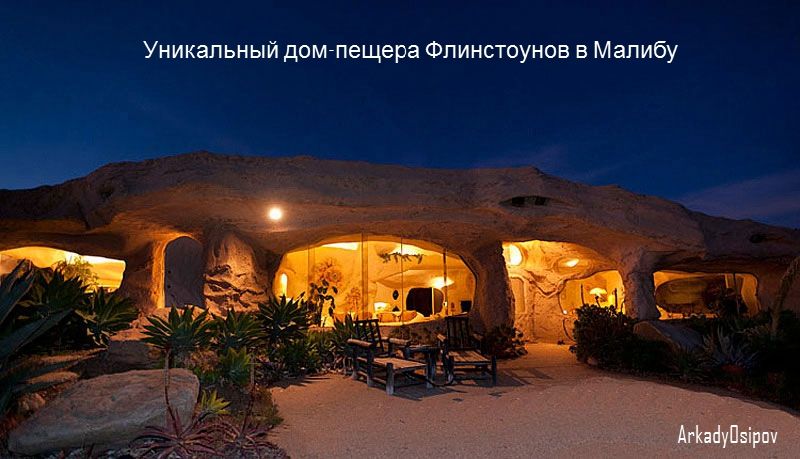 В Малибу находится ещё один необычный дом, выполненный в виде огромной пещеры. Вдохновение на его проектирование и создание архитекторы черпали из мультфильма "Флинстоуны". Это сериал про пещерных людей и их жизнь. По этой причине дом носит название "Дом Флинстоунов".